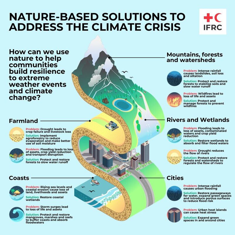 Krisis iklim yang semakin mengkhawatirkan memerlukan solusi yang efektif dan berkelanjutan. Salah satu jawabannya adalah solusi berbasis alam. Berikut ini adalah beberapa contoh bagaimana alam dapat digunakan untuk membantu komunitas membangun ketahanan terhadap perubahan iklim dan cuaca ekstrem.